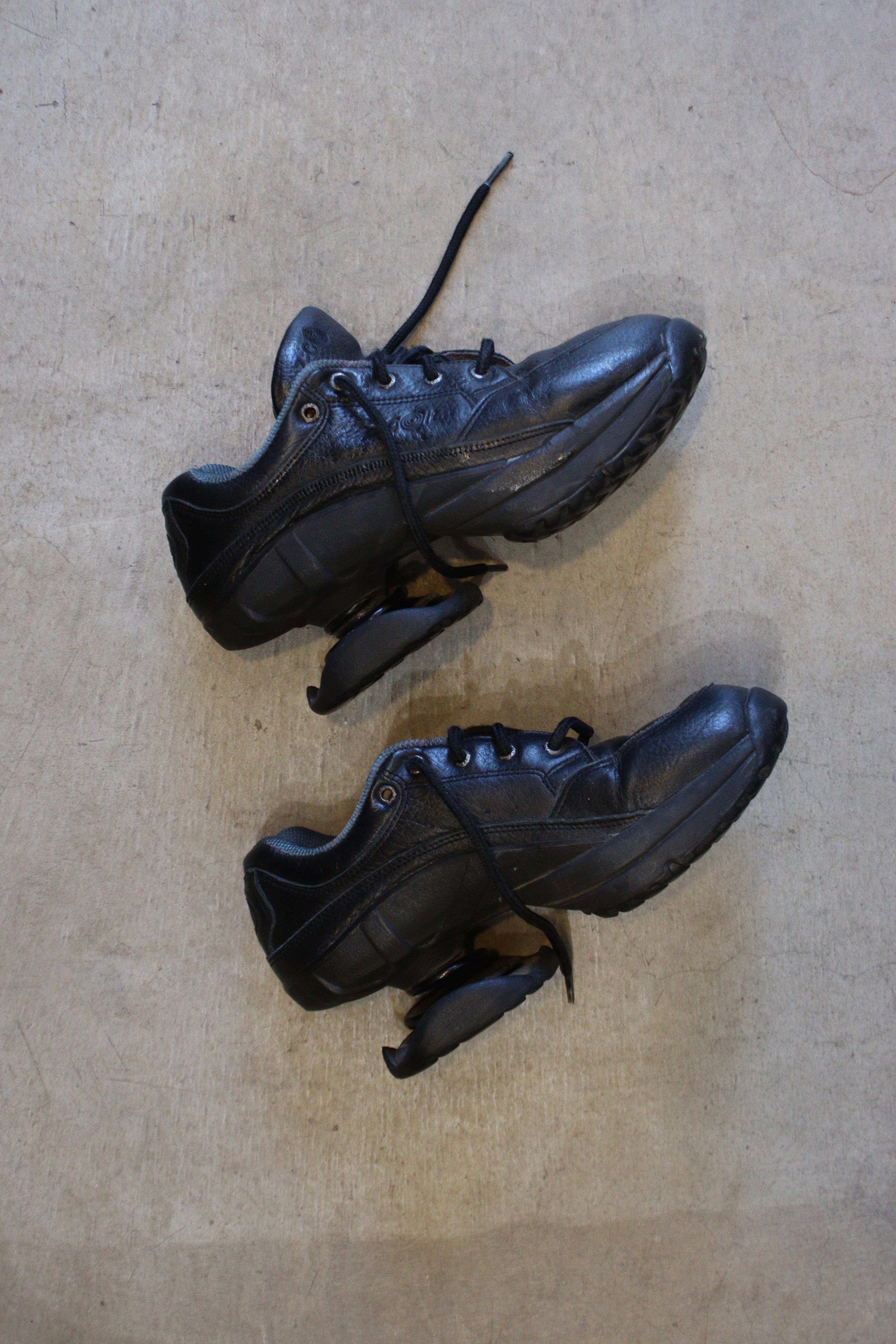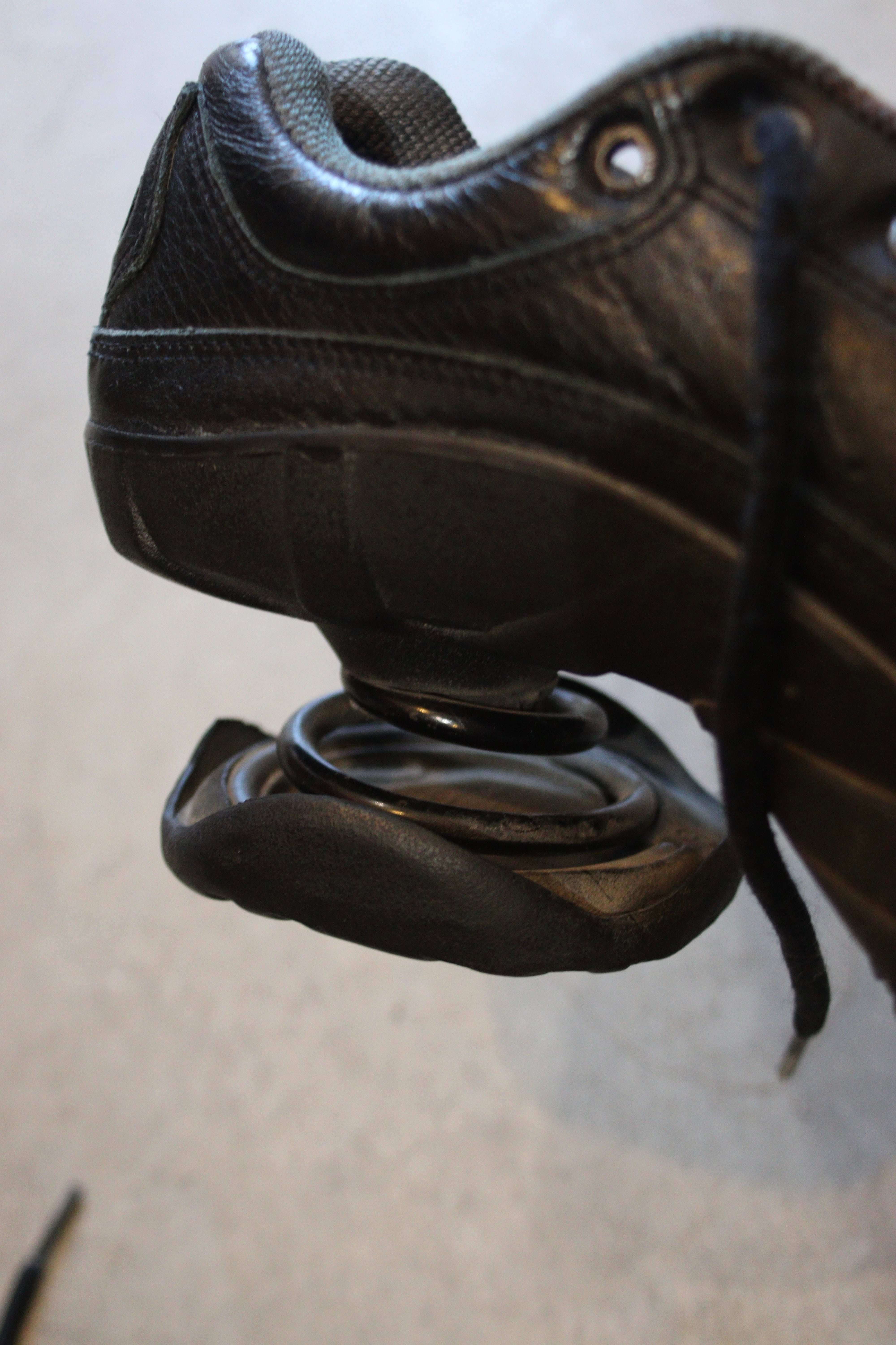 目を惹くバネ付きシューズ。