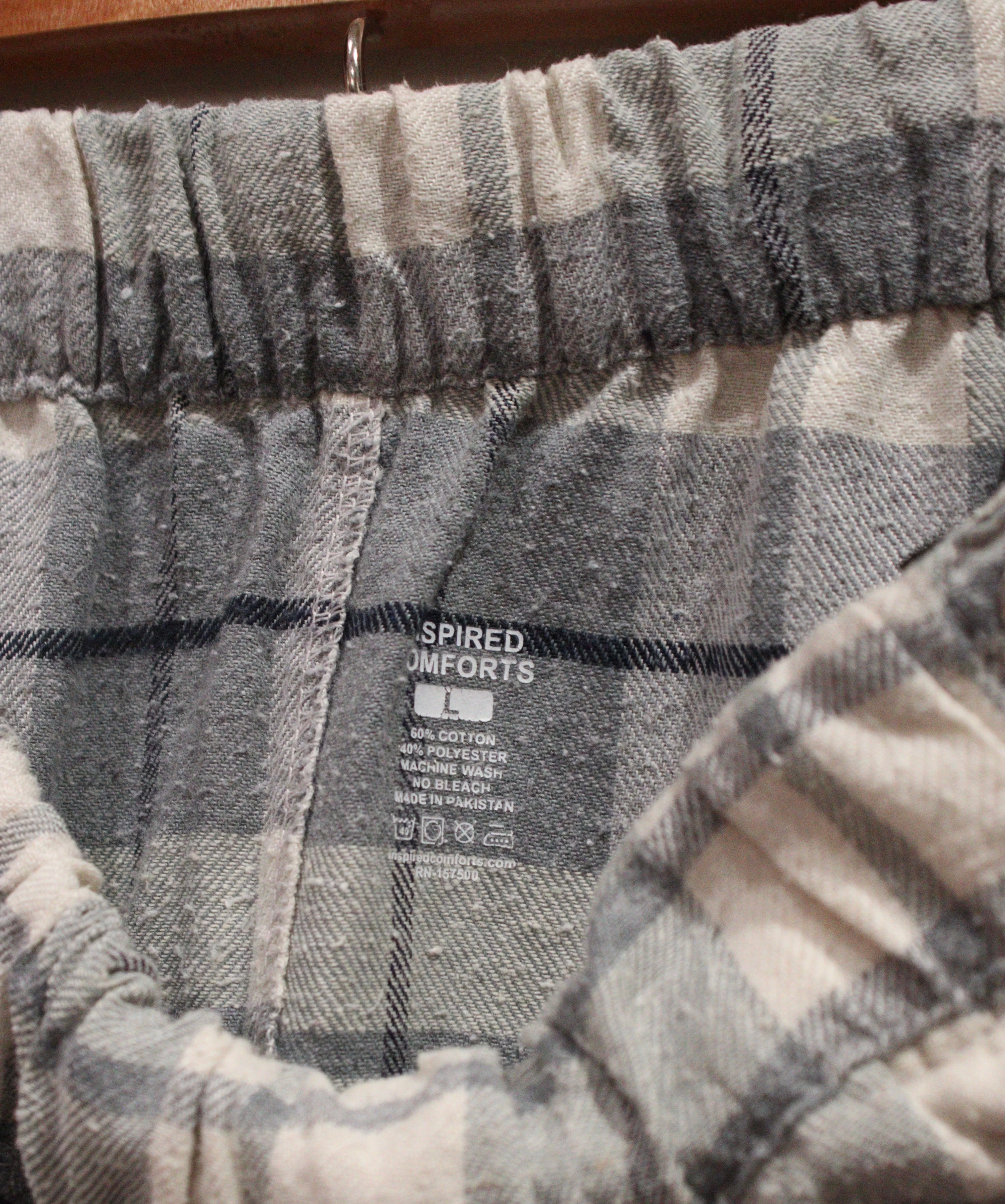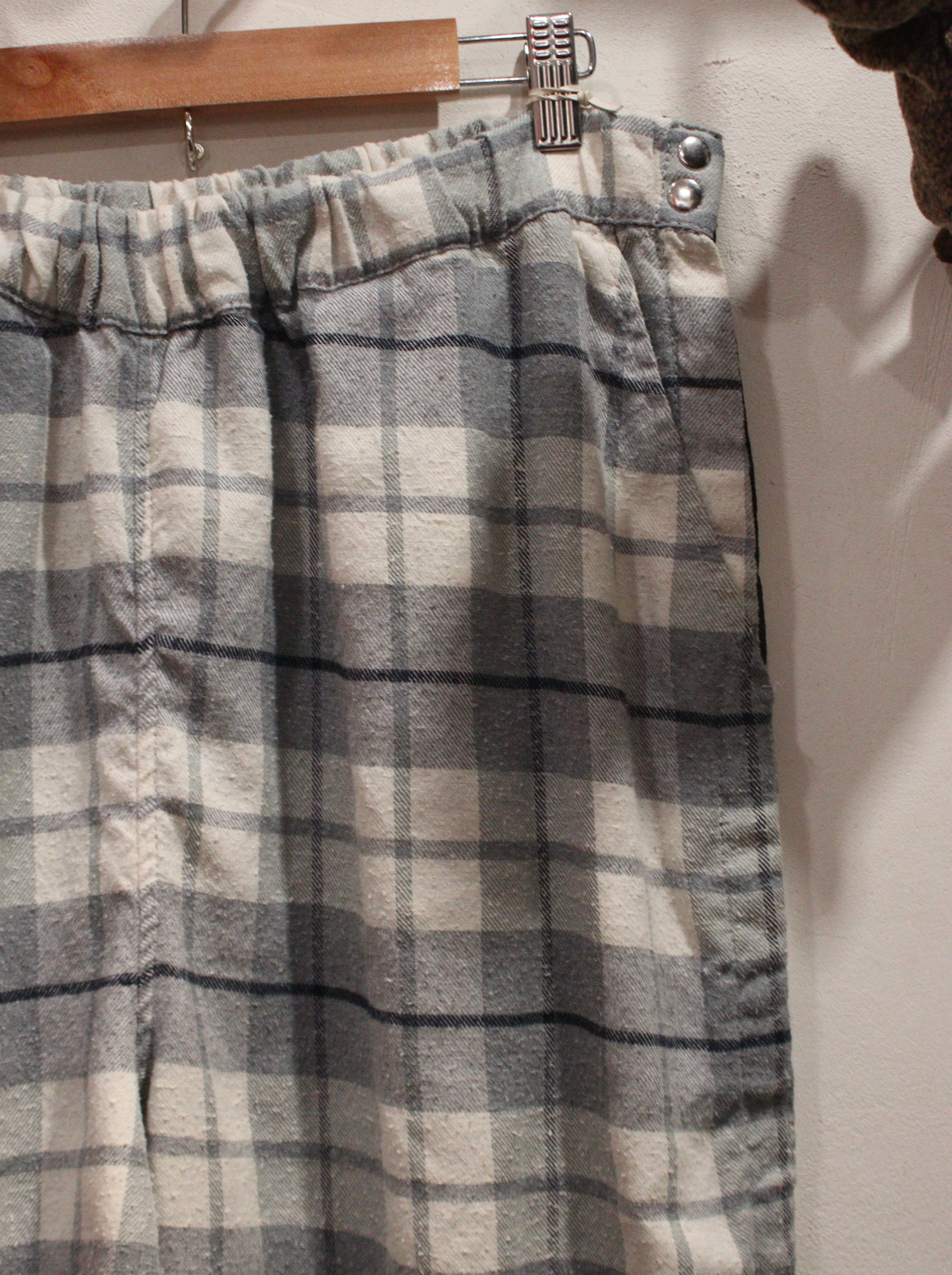 モノクロチェックのフランネルパンツ。